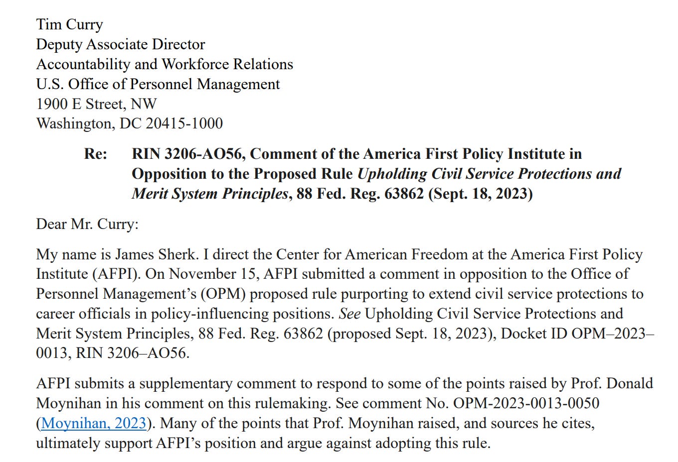 James Sherk, who came up with the idea for the Schedule F order, described the rule as a “speed bump” that would only delay its inevitable return. Sherk also took the time to personally write a comment rebutting my comment to the rule:
