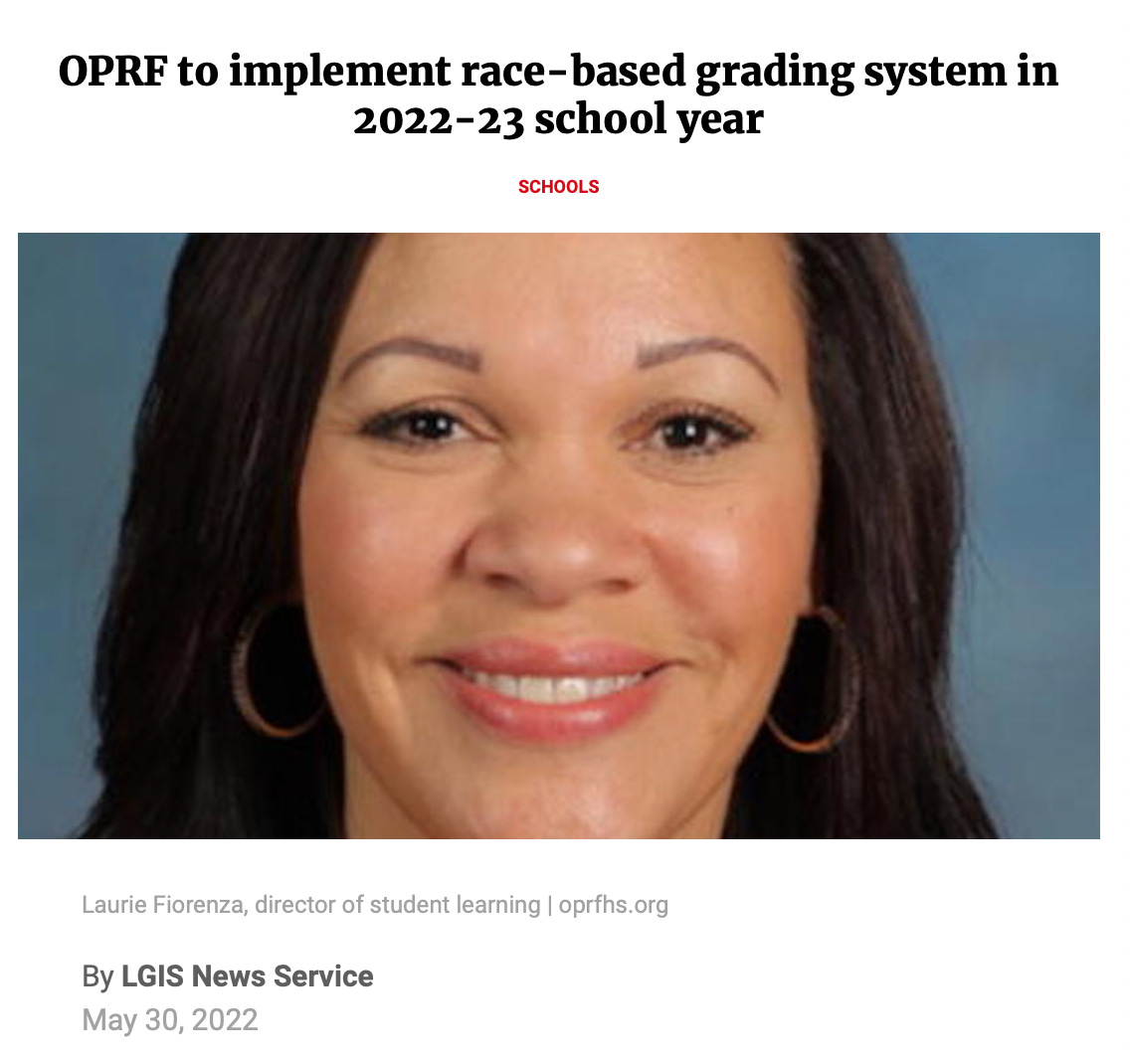 Oak Park and River Forest High School administrators will require teachers next school year to adjust their classroom grading scales to account for the skin color or ethnicity of its students. In an effort to equalize test scores among racial groups, OPRF will order its teachers to exclude from their grading assessments variables it says disproportionally hurt the grades of black students. They can no longer be docked for missing class, misbehaving in school or failing to turn in their assignments, according to the plan.
