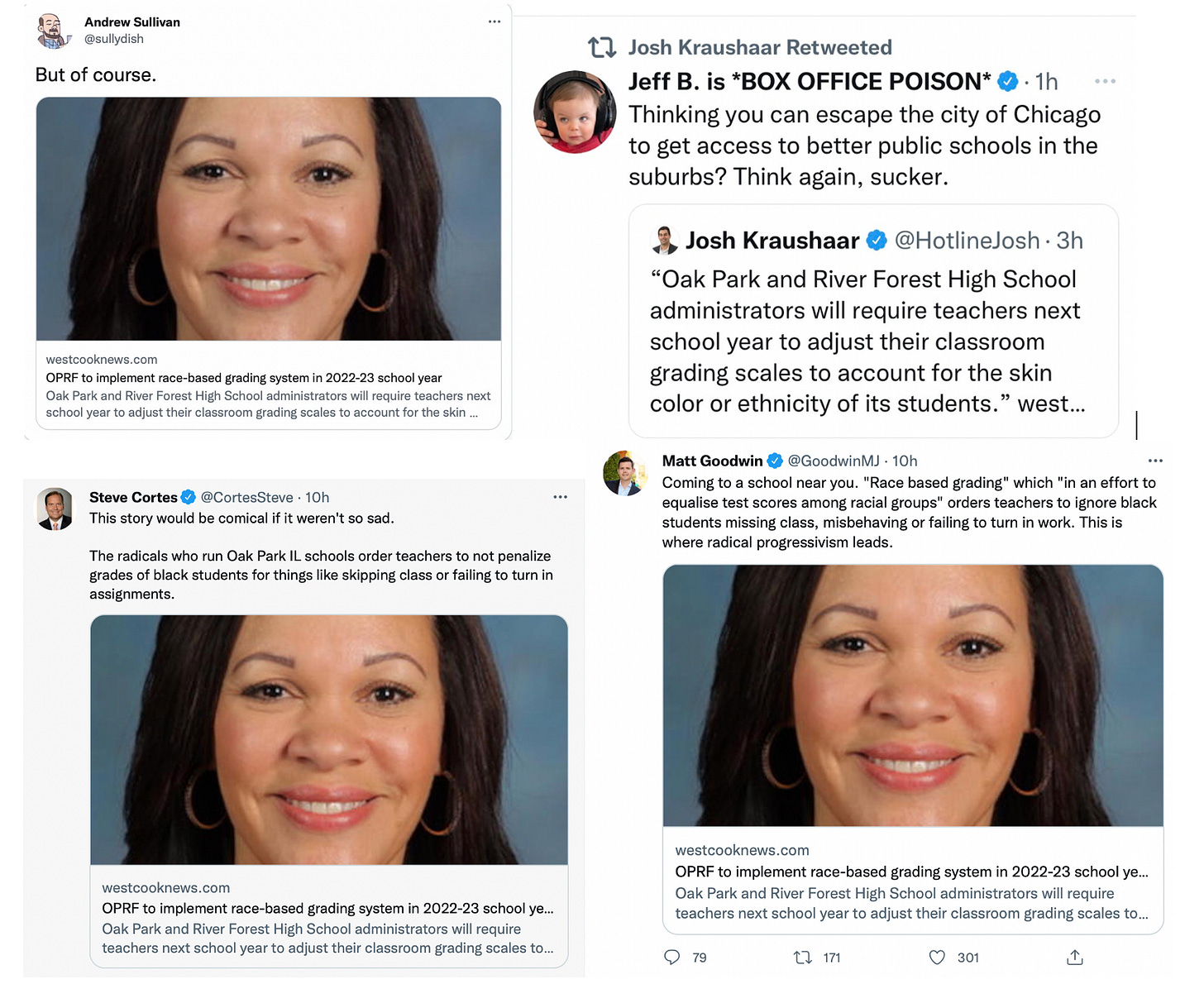 Readers can judge for themselves if framing “race based grading” under the name and picture of a female educator of color is a deliberate choice or not. That said, I would not like to see what Ms. Fiorenza’s inbox looks like after this story.