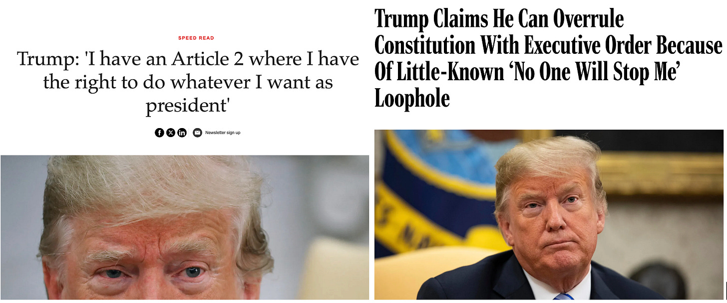 One of the above headlines is from the satirical news outlet, The Onion, and the other is not. It is increasingly difficult to separate satire from reality. Like lots of researchers who understand how funding of our universities work, I was thrown into a panic at Trump’s order to immediately cap overhead rates. I am sharing a slightly revised piece I published in The Bulwark which explains why this matters beyond universities, but which also caused me dwell more on a pattern of lawlessness that defines the Trump administration.