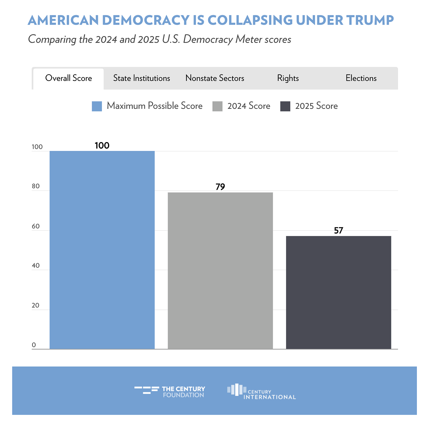 In the first year of Trump 2.0, the United States went from being a passing if imperfect democracy to behaving like an authoritarian state…The typical post-World War II democracies to which the United States is most often compared—Canada, Japan, and those in Europe—have not had these sorts of democratic declines. Other less healthy democracies have experienced similar collapses, but only after coups, attempted coups, or major shocks. The democratic decline in the United States over the last year is remarkable in modern history.