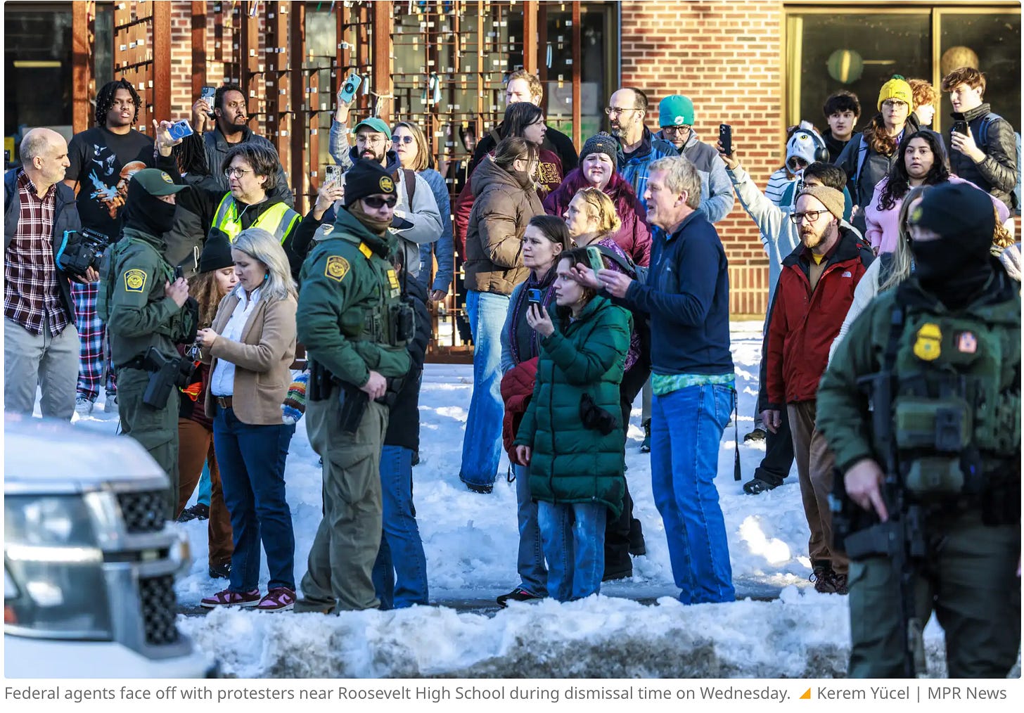 As a large, public Minneapolis high school was dismissing students for the day, two teachers parked in front of the school were violently extracted from their cars and abducted by ICE officers. No warrants were presented; no documents requested or checked. Both abducted teachers were US citizens.