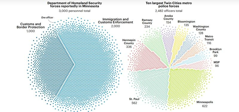 In addition to their presence on our streets and in our businesses, the federal officers appear to be immune to punishment for breaking traffic laws. They routinely run red lights, do dangerous U-turns, drive far over the speed limit, etc. Not in marked cars with sirens and lights ─ but in ordinary rental cars and other unmarked vehicles. This is all happening on Minnesota’s very icy January roads, which most federal agents are not used to driving on.