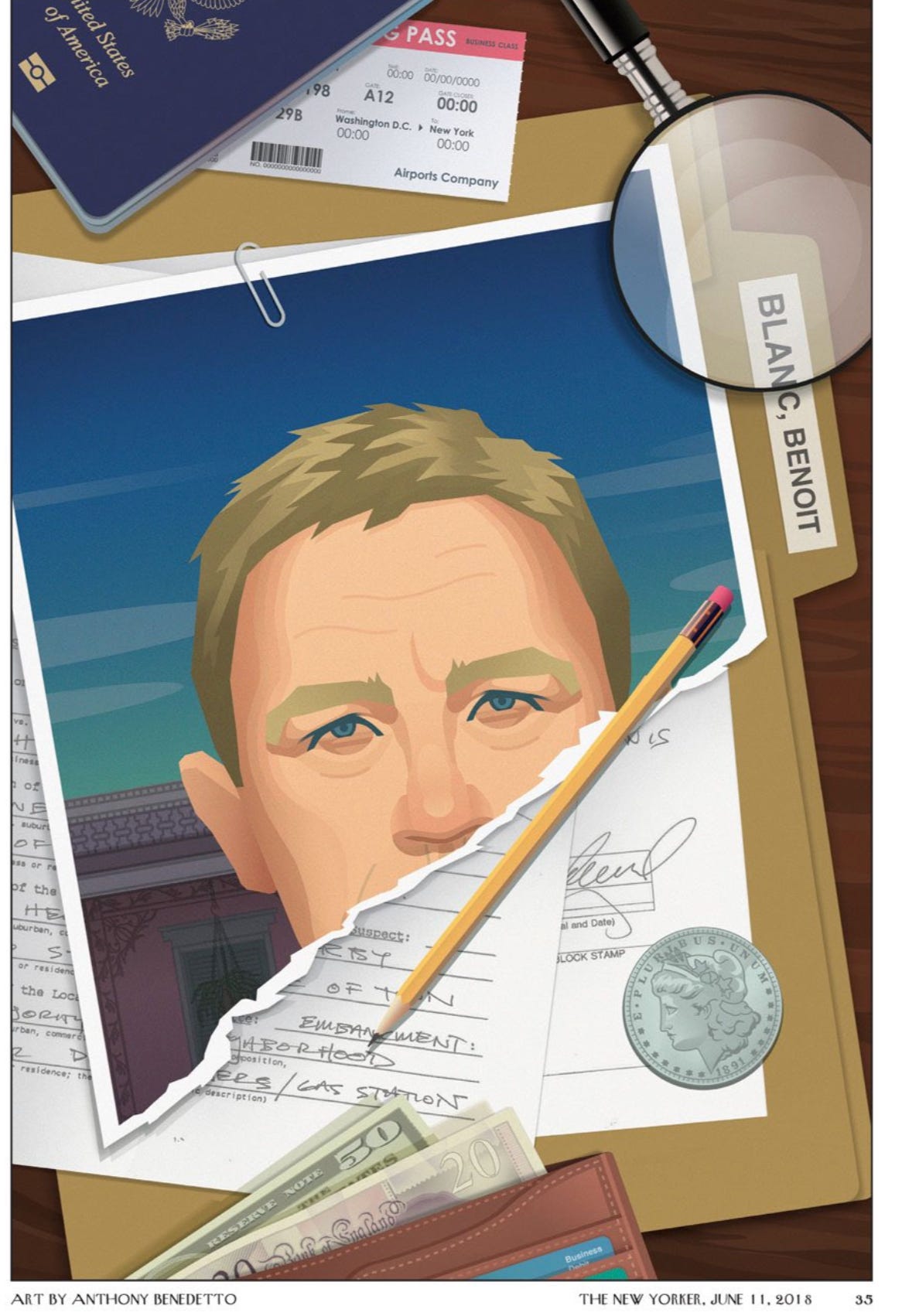 The costume designer, Jenny Eagan describes how Craig has played an active role in mapping out Blanc’s looks: “He came with a couple different images: the films of Jacques Tati and Hitchcock’s How to Catch a Thief.”