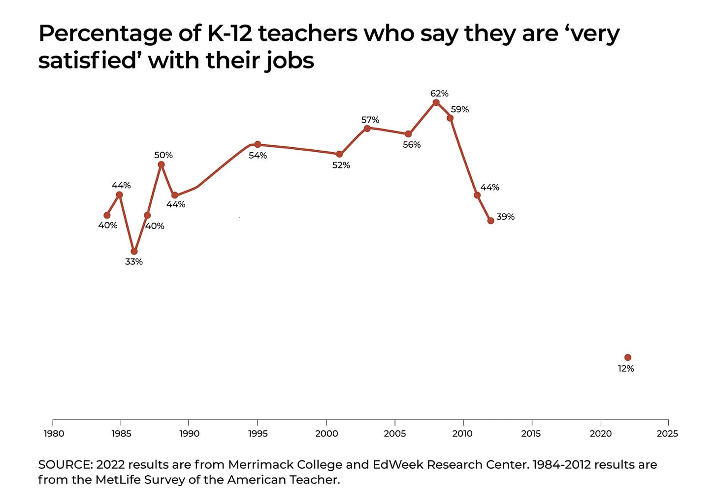 If the majority of parents support teachers, it may feel like a silent majority to teachers. There has been a collapse in teacher satisfaction.