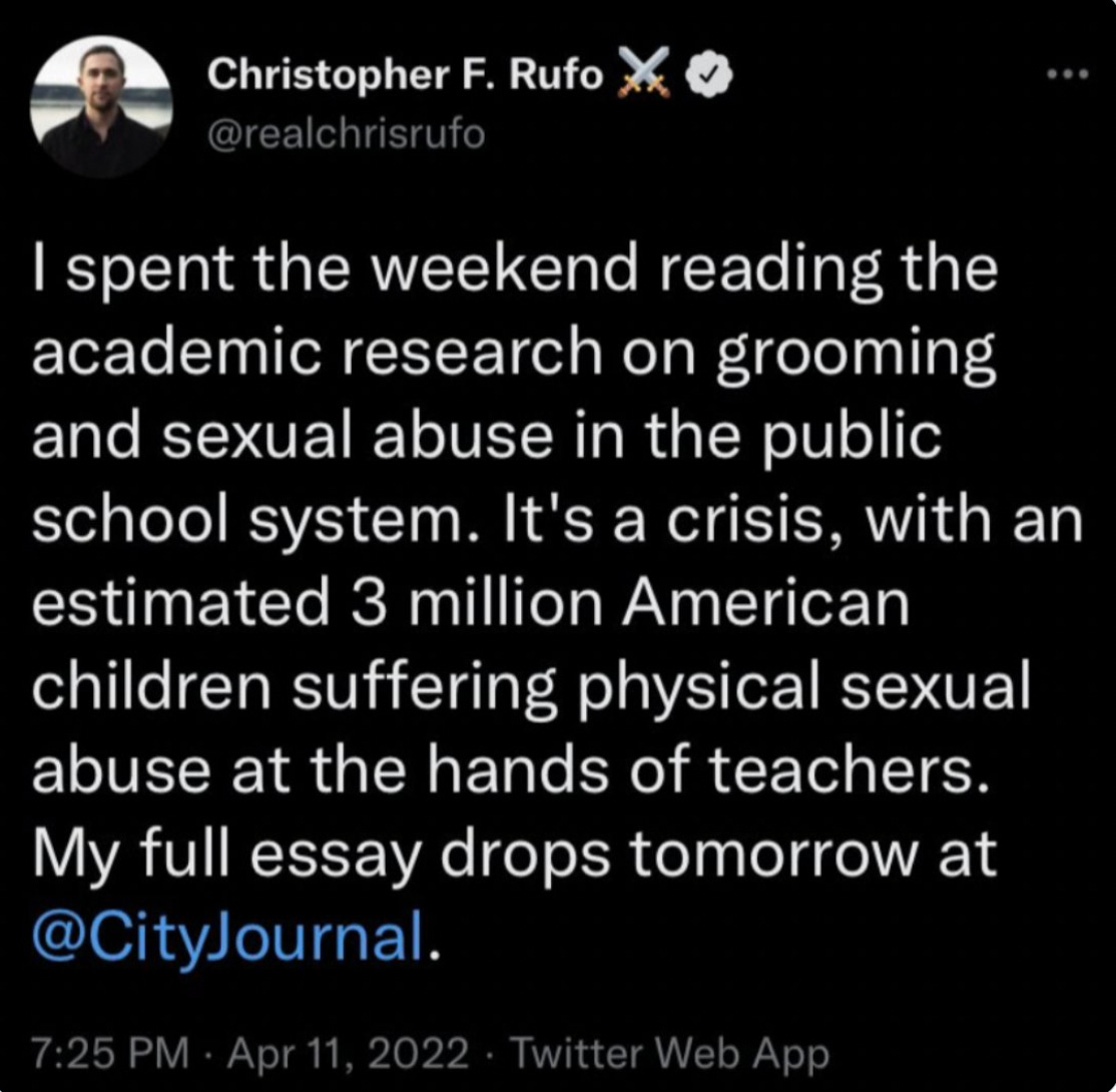 This essay is wildly inaccurate about what is happening in education, and Rufo is totally correct.