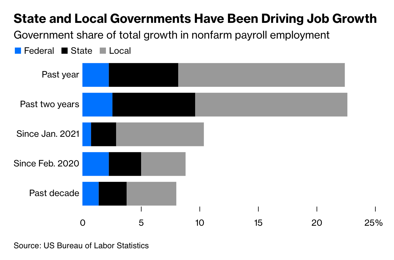 The hollow state was created over the last fifty years with the enthusiastic support of Congress who could claim that they weren’t increasing the size of the federal government but were responding to constituent needs. It was supported by local politicians, communities, and programmatic professionals in state and local government and the nonprofit sector who supported a model where the federal government funds jobs in state and local government and the nonprofit sector in a multitude of policy areas. Domestic spending by the federal government quintupled in that time and nonprofits and state and local governments have increased their workforce dramatically.