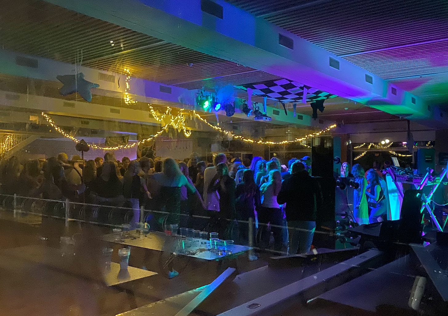 Photo credit: Me, walking past, but not actually going inside the cafeteria-turned-nightclub on the college campus