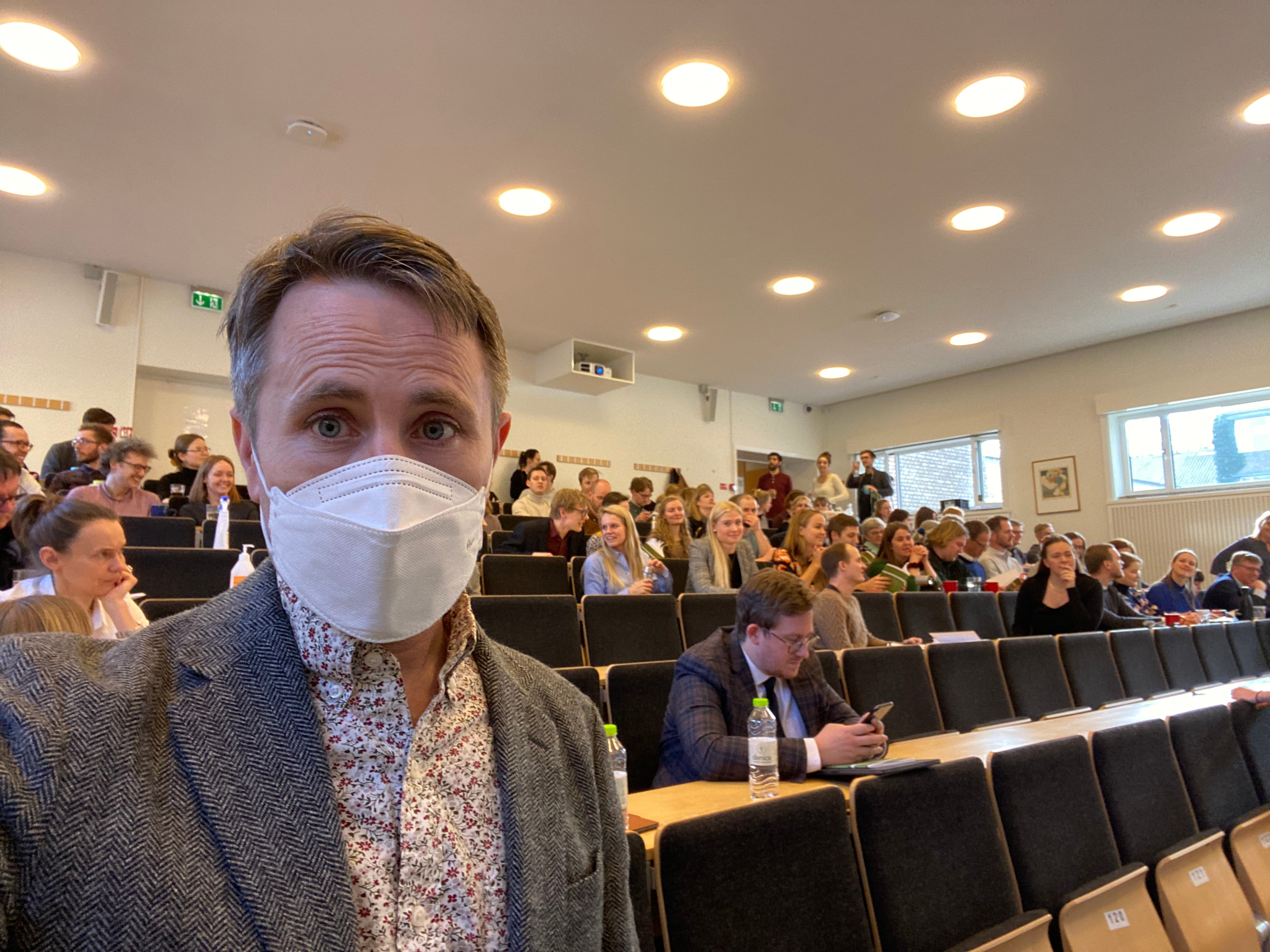 I stayed mostly in the the college town of Aarhus. On Friday night on campus, I joined a group of about 50 people eating and drinking to celebrate a dissertation defense. Walking home, I passed masses of undergraduates partying in the college cafeteria, and long lines at the nightclubs. Not a mask to be seen.