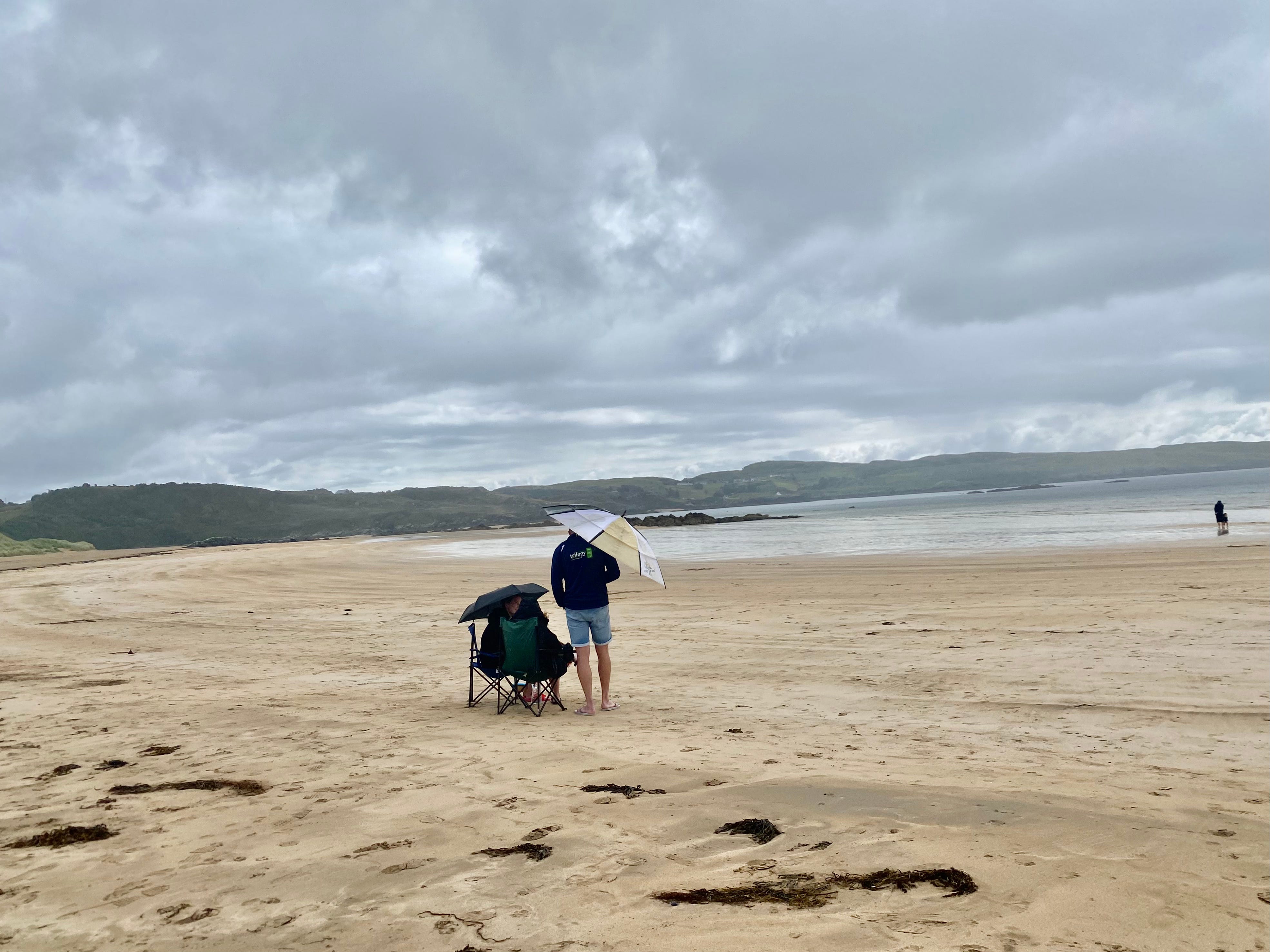 But beach wear in Ireland also includes a rainjacket and umbrella.