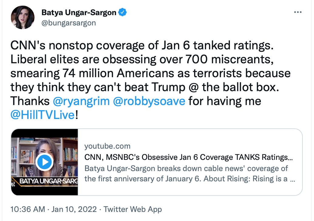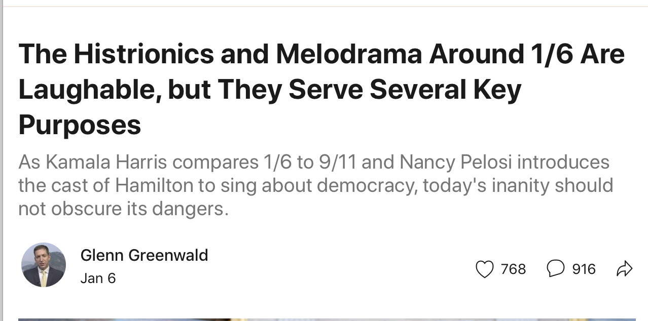 You don’t have to believe that January 6th was 9/11 or Pearl Harbor to believe it is important. You merely need to believe that US political elites should take it as seriously as they did Benghazi.