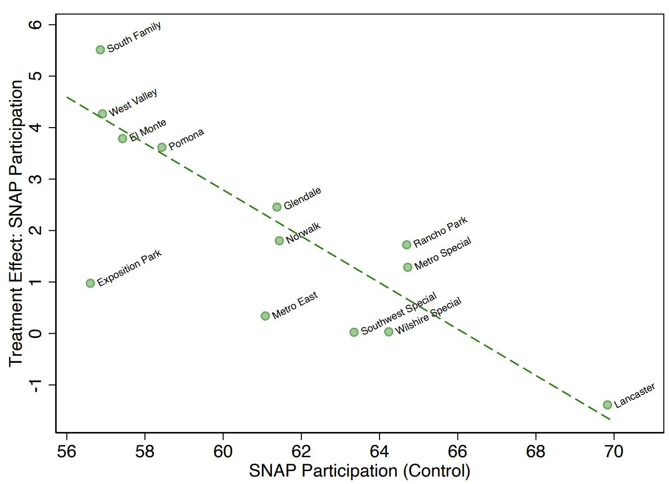 Figure 3: Flexible interviews reduced variation across offices in eventual enrollment among SNAP applicants (Los Angeles)