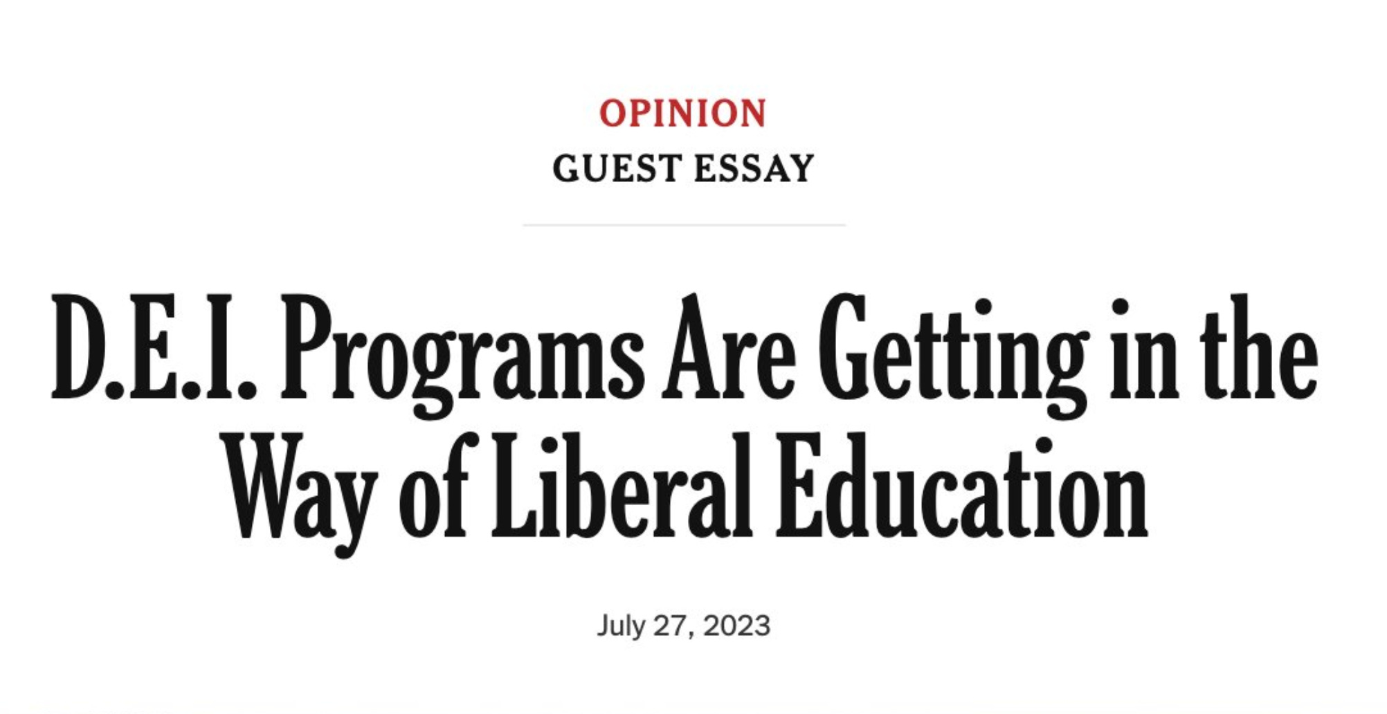 Meanwhile, the New York Times recently featured Rufo on its opinion page, where he pinned an essay about the risks to liberal colleges. The chief risk: DEI programs.