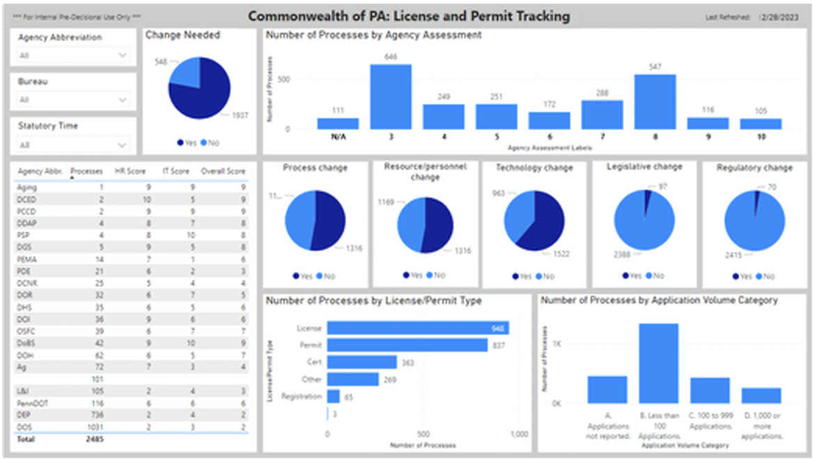 Pennsylvania reformed the state’s permitting application process to provide Pennsylvanians with transparency, accountability, and a better overall customer experience. The governor’s team took the following specific steps: