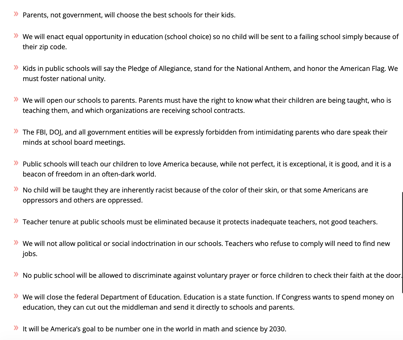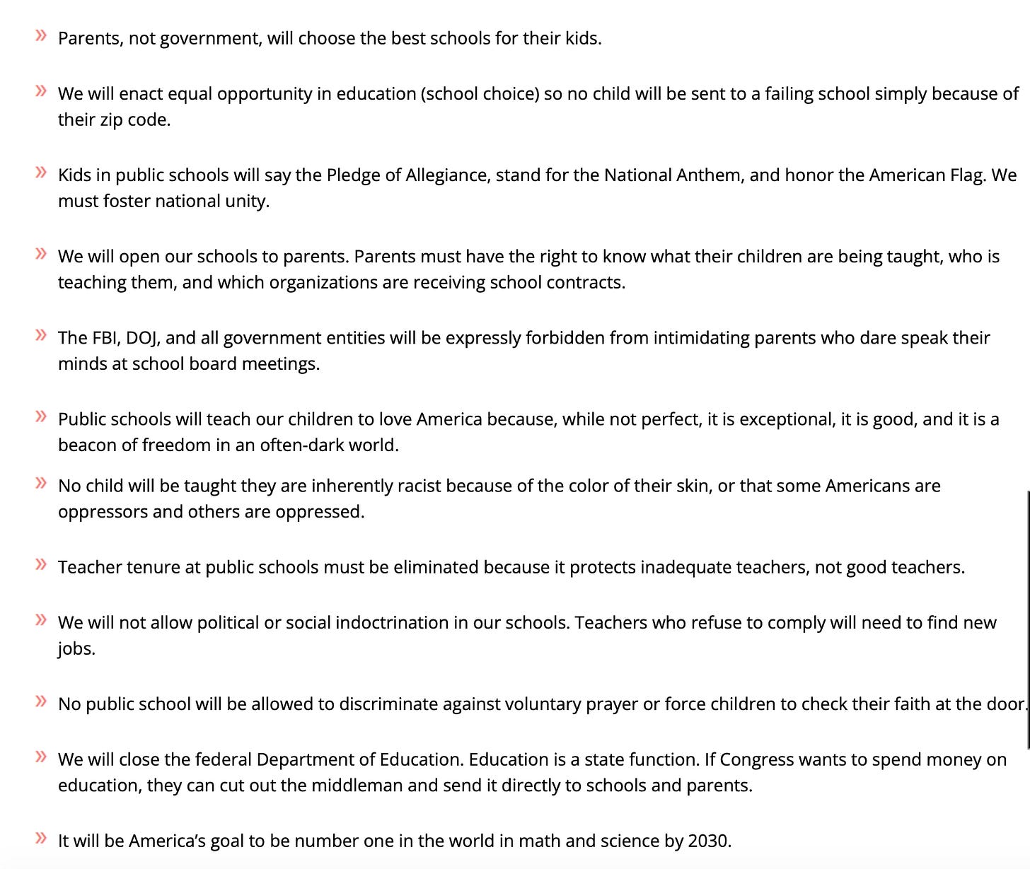“We will inspire patriotism and stop teaching the revisionist history of the radical left; our kids will learn about the wisdom of the US Constitution, the Bill of Rights, and the founding fathers.” I don’t have the energy to go through every part of Scott’s education plan (below), but suffice to say that while many aspects of Rescue America outline a vision of a smaller federal government, Scott calls for a massive federal takeover in education, including curricular control, and determining teacher employment conditions. This will somehow happen despite getting rid of the Department of Education.