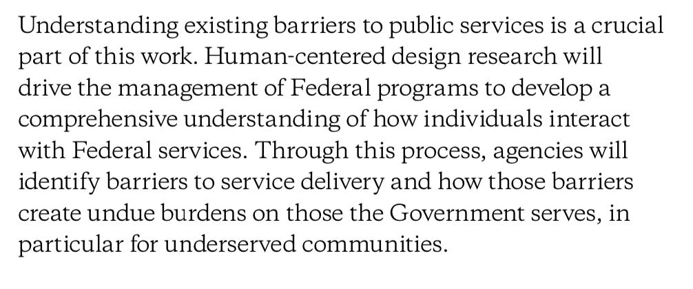 Previous federal governments have emphasized customer service. It was, for example, a staple of the Clinton-Gore Reinventing Government initiative. Unlike the past, the Biden-era emphasis on burdens directs attention to equity and access as an aspect of customer service. It is not enough that the person who gets a benefit like the Child Tax Credit reports good customer experience - you also need to think of the eligible individual who does not get the benefit, and reach out to them.