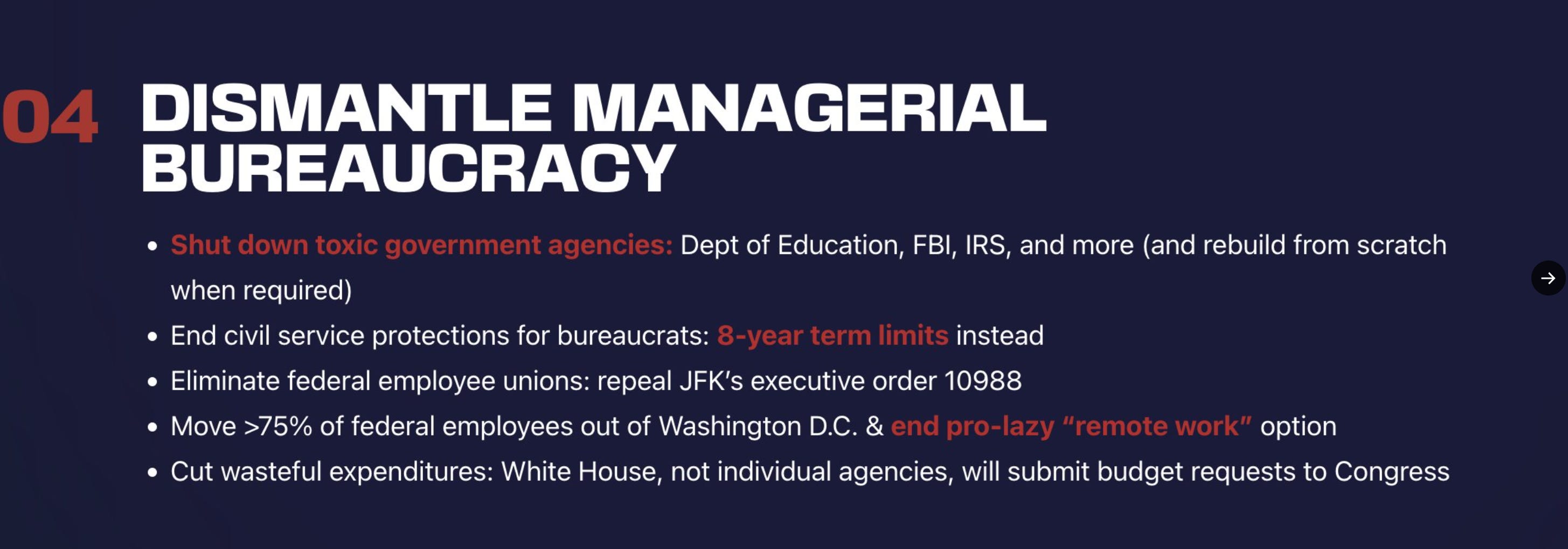 Another headline proposal is that Vivek has promoted is that he will cut 75% of federal employees.