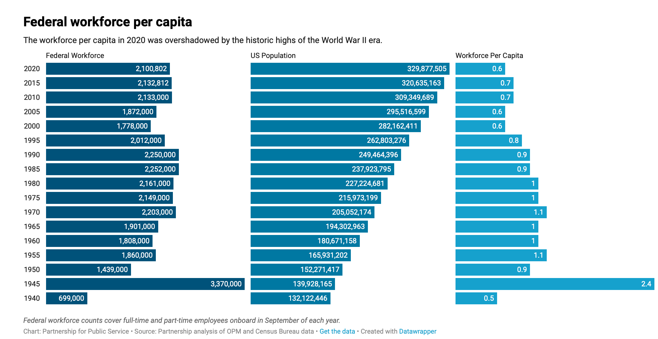 This fact might feel surprising to you because our political leaders are dedicated to othering federal employees and the government in general. They are far away from us, in swampy Washington DC. This makes it easier to engage in government bashing. But the reality is that government is us. Federal employees are our relatives and neighbors, spread across America. Indeed, the growth of the American frontier is the history of the growth of government, though this is a civic truth we like to downplay.