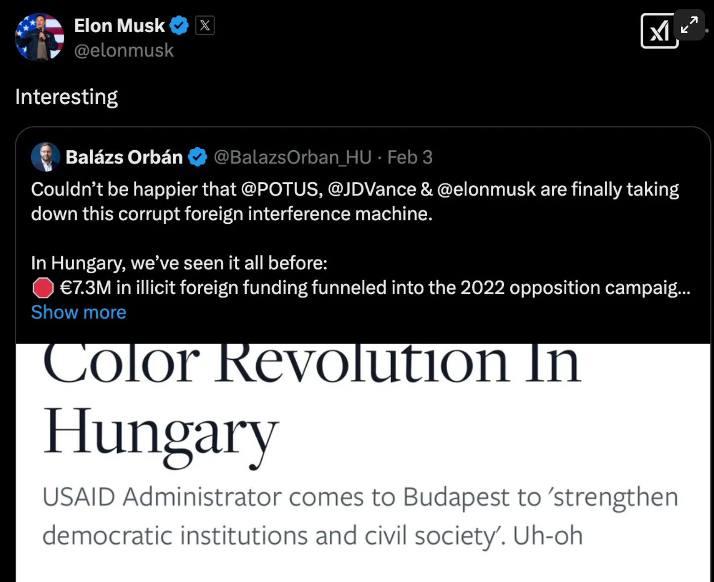 Musk elevated claims that USAID was protected by journalists because it had been secretly funding the media, based on government subscription services to media outlets.