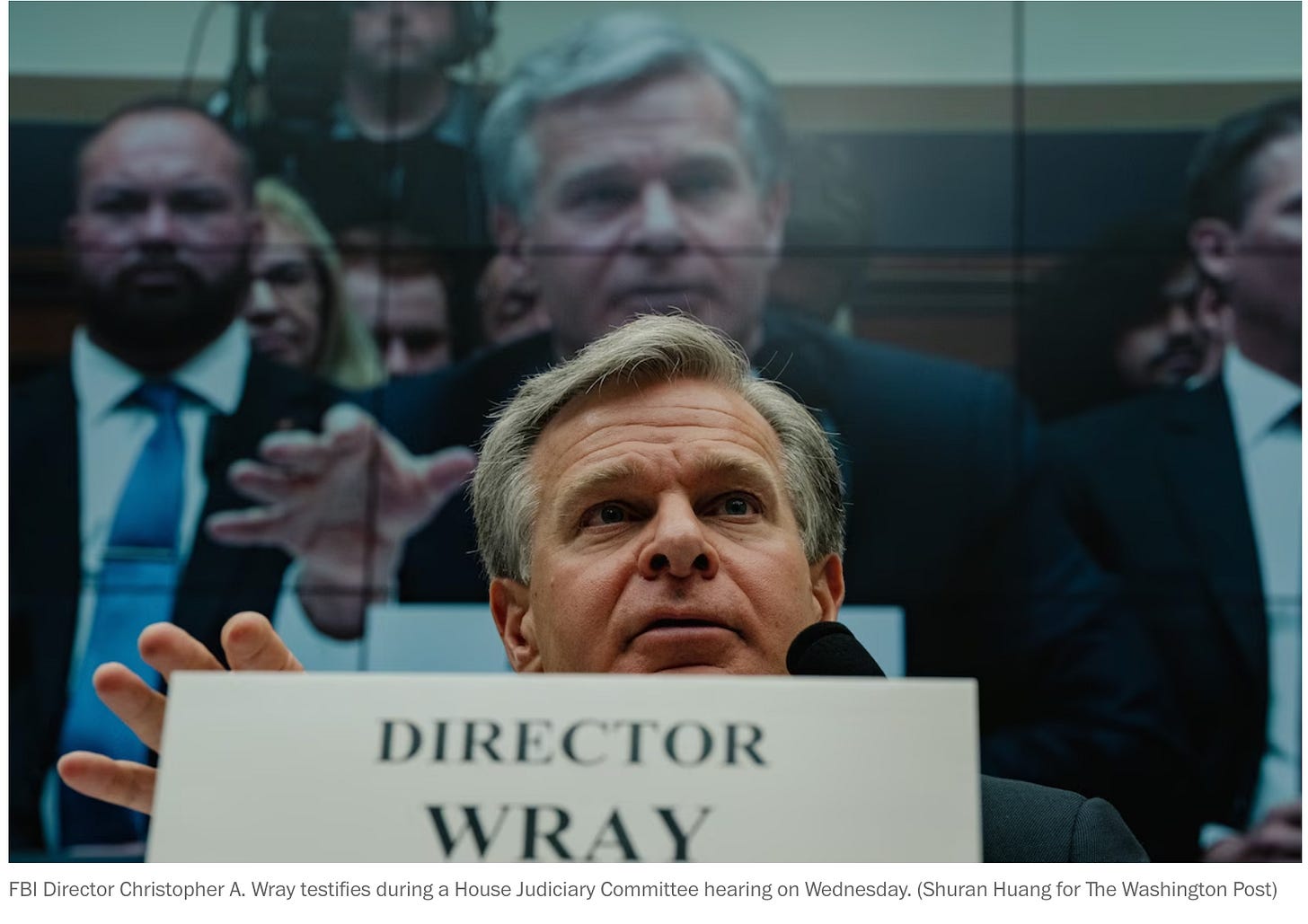 The fact that elected officials in the House majority have so lost touch with reality should be the story of the Wray hearing. But if you just saw the headlines, you would not have have gauged how insane the hearing was. This represents another measure of the normalization of the deinstitutionalization project. The bizarre has become legitimate.