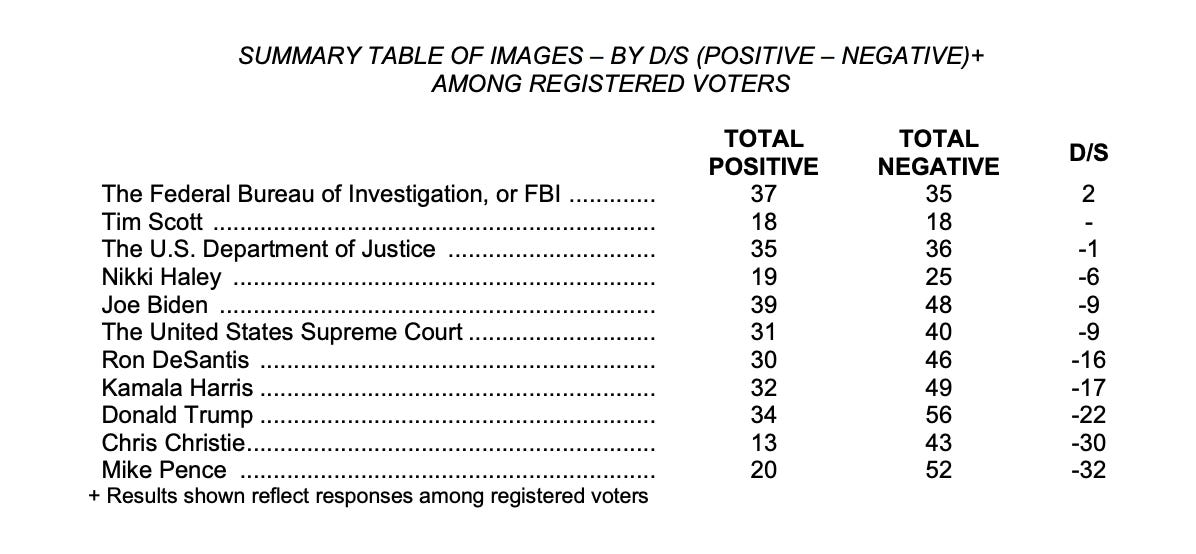 The claim about FBI unpopularity should be heavily caveated. Trust in public agencies has, historically at least, maintained a basic equilibrium. Some agencies (e.g. NASA) are more popular than others (e.g. IRS). Trust might decline when an agency is in the spotlight, as the FBI is now, but it generally bounces back. And trust in government agencies declines among partisans when their President is not running the agency, feeding GOP distrust of the FBI. Finally, the same poll showed that the FBI remains more popular than Republican hopefuls for the Presidency.