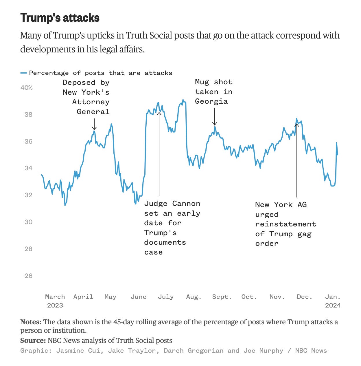 Within the space of a couple of weeks, three officials who challenged Trump in some fashion in court were victims of swatting: the Maine Secretary of State who sought to remove him from the state ballot, the judge presiding over his election interference case (who was placed under 24-hour protection), and special counsel Jack Smith. In Colorado, state supreme court justices that ruled that Trump should not appear on the state ballot faced four “swatting” attempts. Another judge in a different Trump case faced a bomb threat. The family of Michael Cohen, a key witness against Trump, was doxxed.