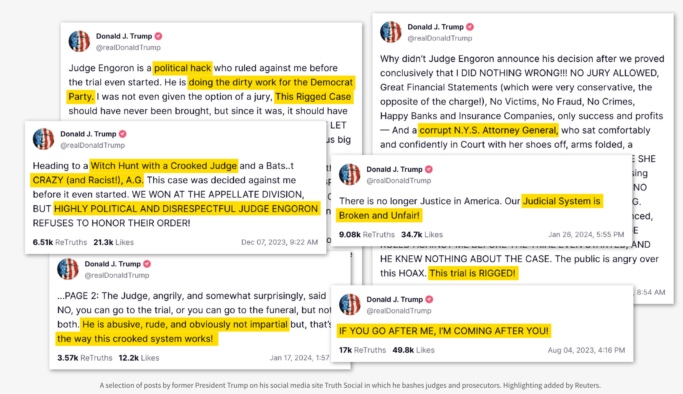 Trump had attacked them all. It is part of a broader pattern of threats directed towards people involved in the legal system. The fact that a jury found him guilty occurred despite the shadow of intimidation, where Trump supporters have tried to dox them and issued violent threats, is a somewhat remarkable affirmation of the fearlessness of citizens.