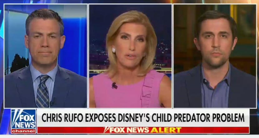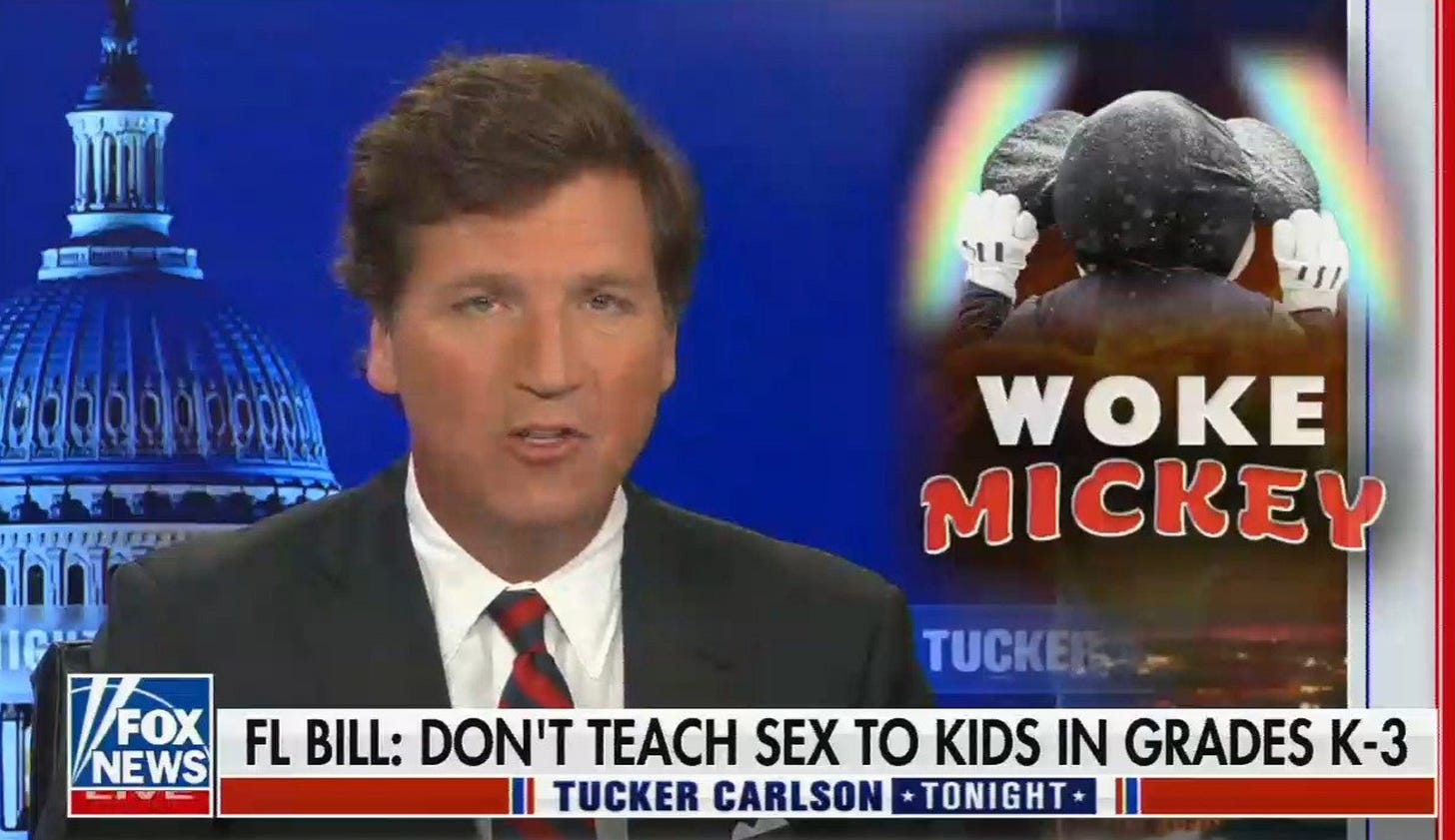 Fox mentioned “Disney” more than 350 times and in over 3 hours of coverage this week. Its commentators claimed the company is “grooming” and “sexualizing children” in order to push a “progressive LGBT agenda.”