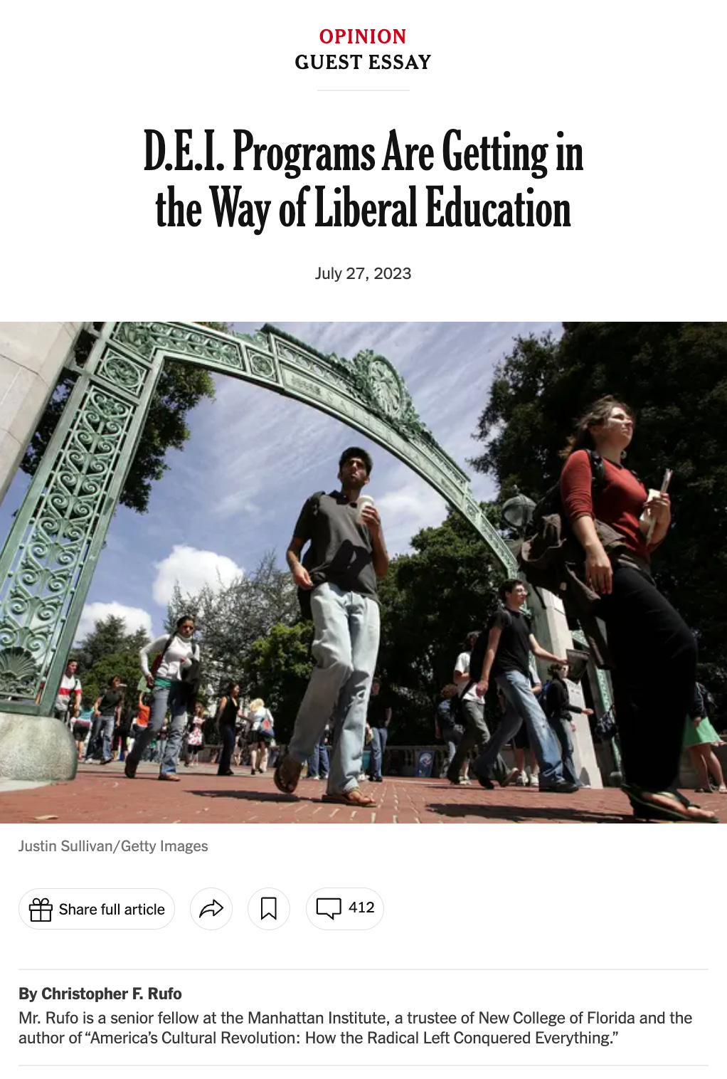 When Michelle Goldberg criticized New College in an opinion piece, she interviewed Rufo, showing more journalistic commitment to hearing from dissenting views than Hartocollis offers. Rufo, the New College trustee, is not mentioned in Hartocollis’s piece, which seems surprising given that he was the primary lead of the campaign to remove Claudine Gay that Hartocollis wrote extensively about.