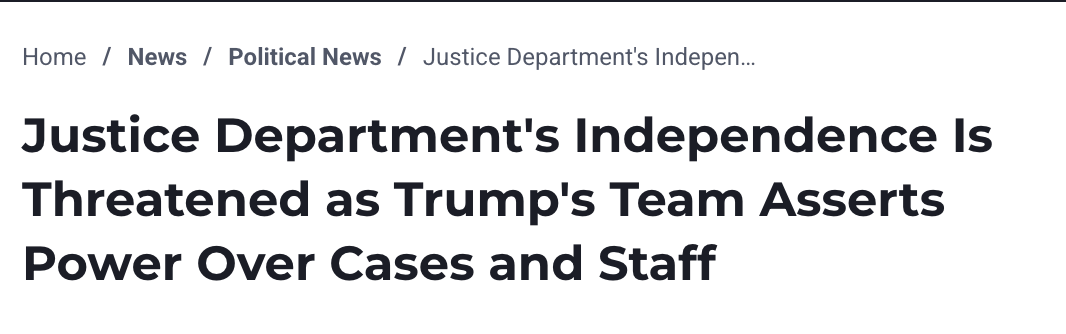 To maintain Trump’s personalist Presidency requires defanging standard modes of presidential accountability. In his first term, Trump fired Inspectors General at an unprecedented rate, removed the head of the FBI, and complained about Department of Justice investigations. A key lesson he drew from his first term was to build an even stronger legal infrastructure to further shield him from risk and increase his power. Trump and supporters eliminated the long-standing norm that the Department of Justice maintain a measure of independence from the President, enabling him to directly intervene in cases involving investigation of himself, or his political opponents.