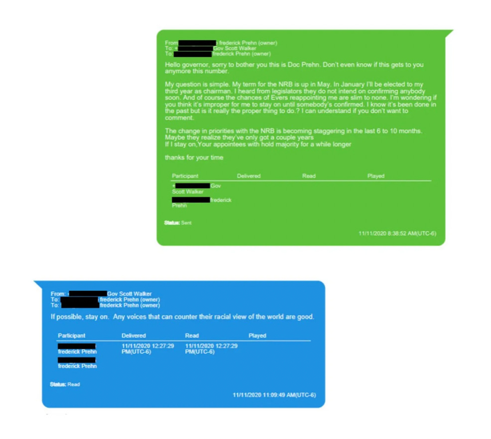 Public records have shown Prehn reaching out to Scott Walker, as well to other key lawmakers and lobbyists, including the Senate Majority Leader Devin LeMahieu. They reveal not just the coordination discussed above, but the explicit indifference to democracy.
