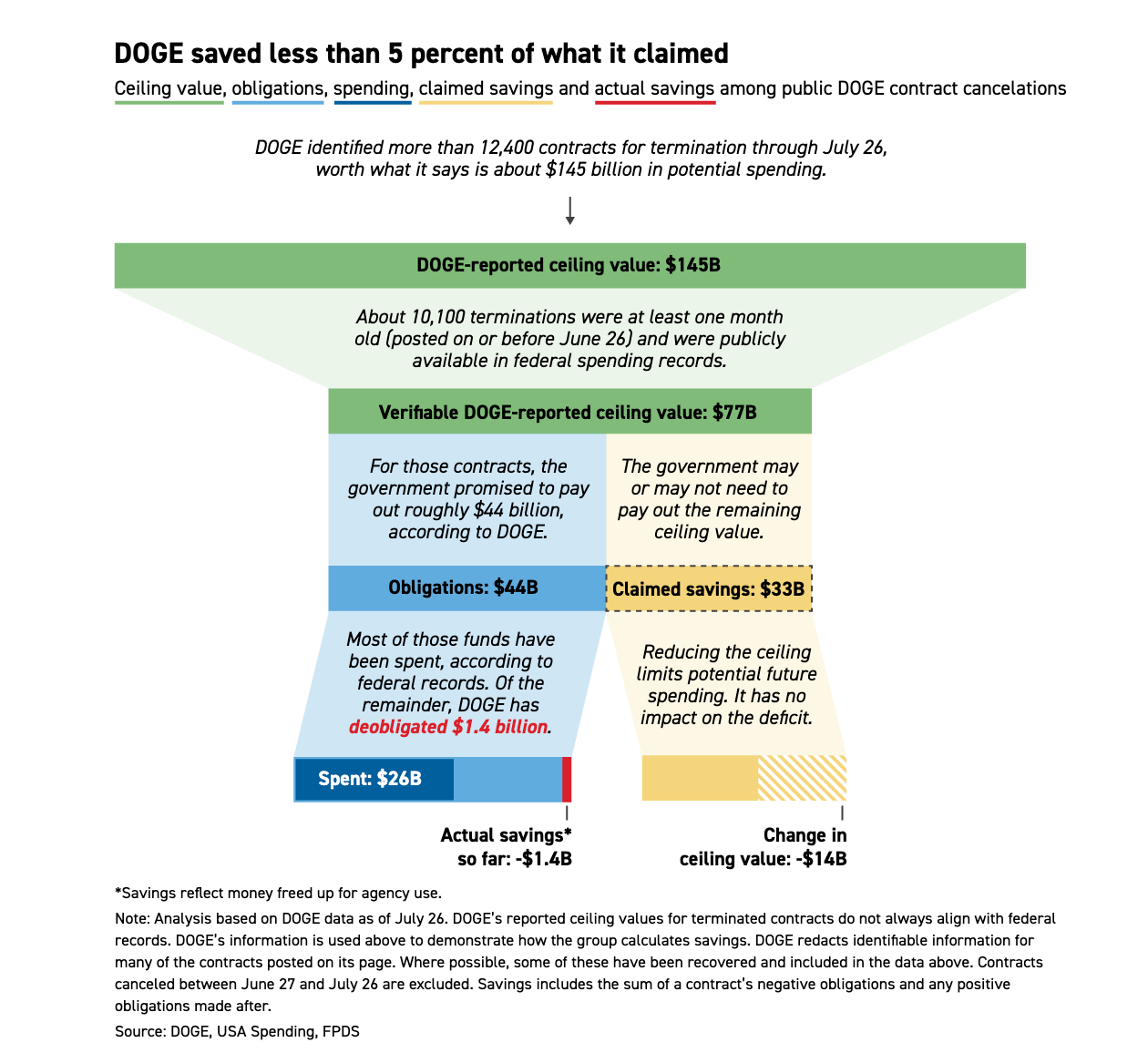 How bad could it get? One comparison is to countries like Argentina, Turkey and Greece that cooked their data, making them untrustworthy for investors. We can also look at DOGE as a contemporary example of Trump-era data manipulation. DOGE claimed to have cut hundreds of billions in a way that was “maximally transparent.” But the underlying data was difficult to verify, and it took months of investigative reporting to reveal the claims were mostly bunk. For example, a new analysis by Politico found that less than 5% of claimed DOGE contract cuts resulted in real cost reductions.