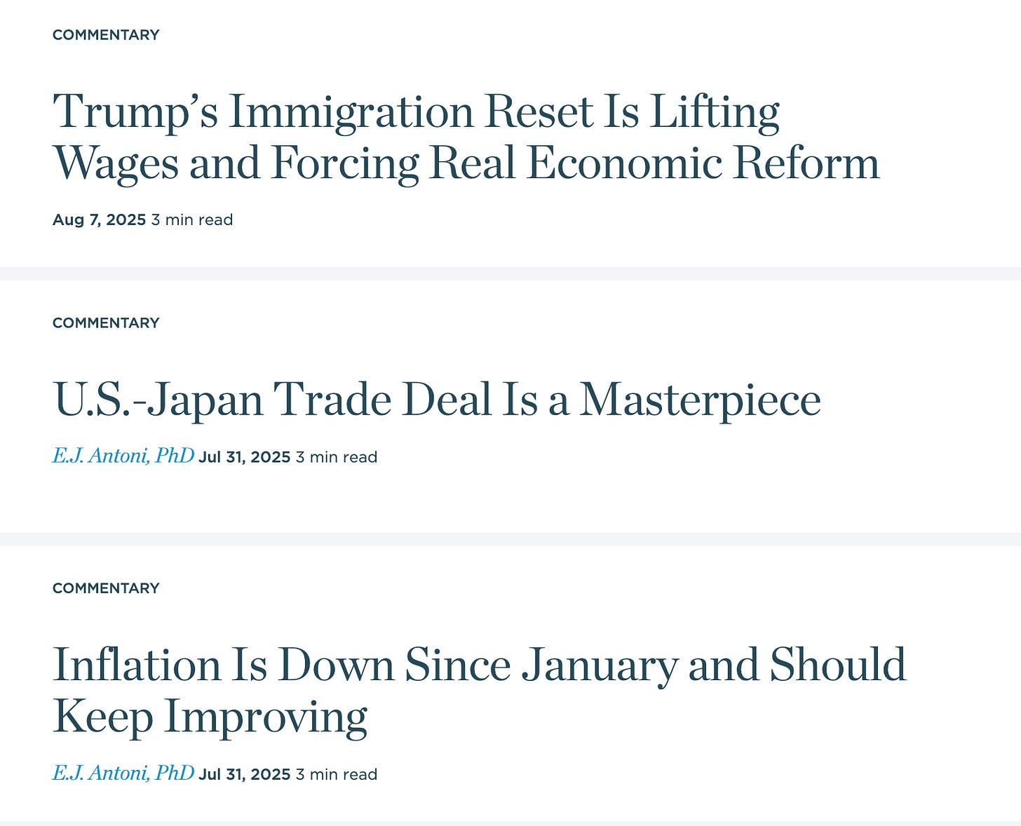 Since Trump has already said that the economy is booming, he merely needs an loyalist who will provide numbers to support these claims. And that is precisely what he thinks Antoni offers. Antoni is a regular on conservative media and the last three blogs give a flavor of his willingness to unconditionally praise every action Trump takes.