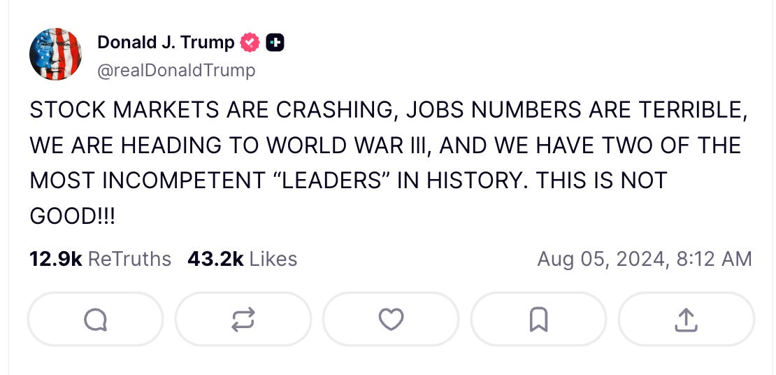 Here is what Trump posted in response to the August 2024 revisions to the jobs numbers, which he is now saying was rigged to benefit Biden/Harris.