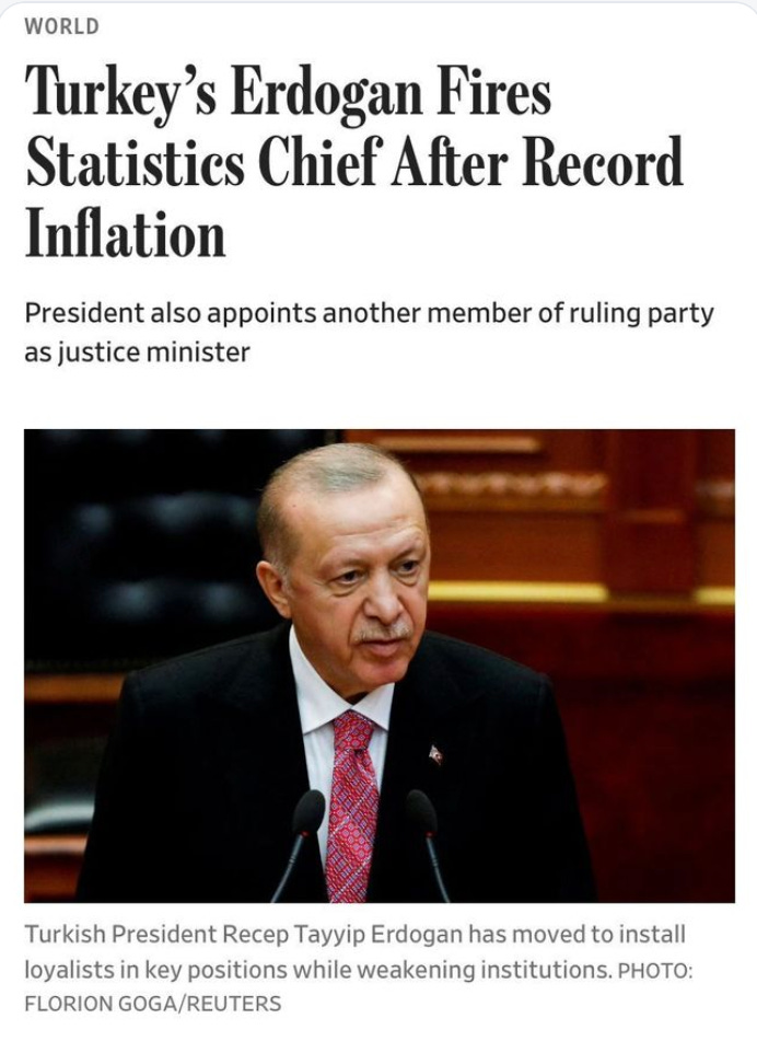 Or Turkey, where the authoritarian Erdogan fired the national statistics chief when he did not like inflation data.