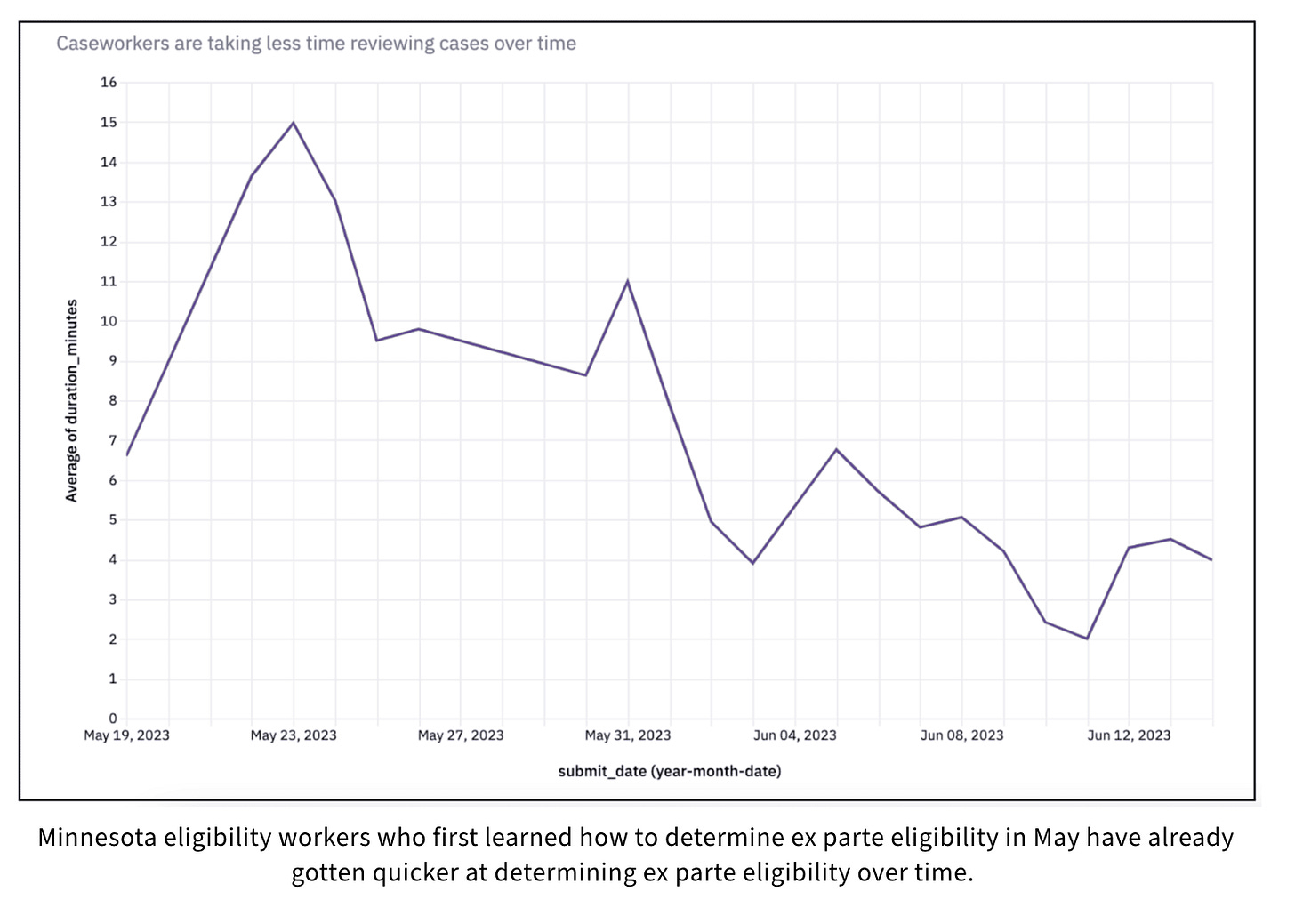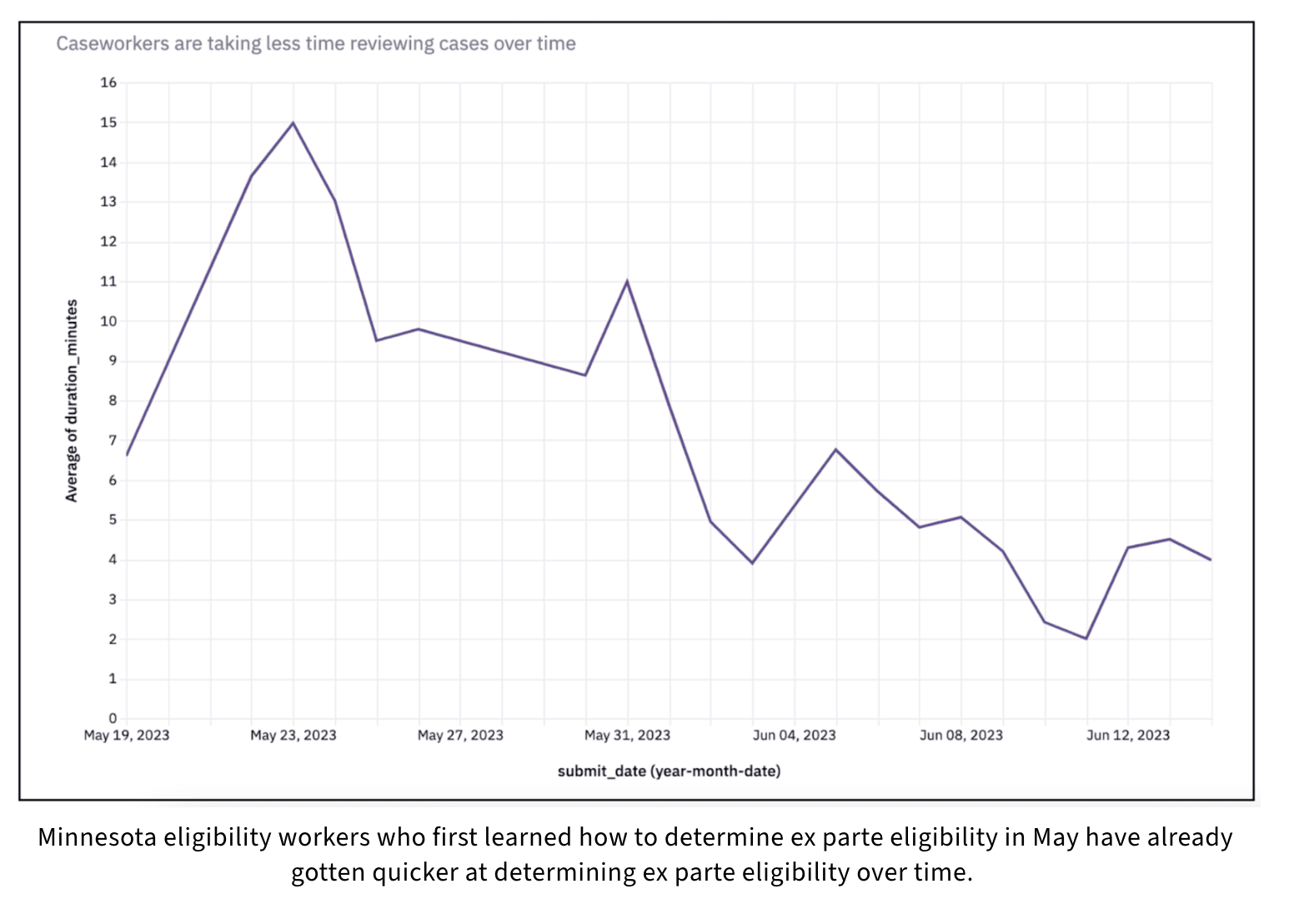 Minnesota eligibility workers who first learned how to determine ex parte eligibility in May have already gotten quicker at determining ex parte eligibility over time.