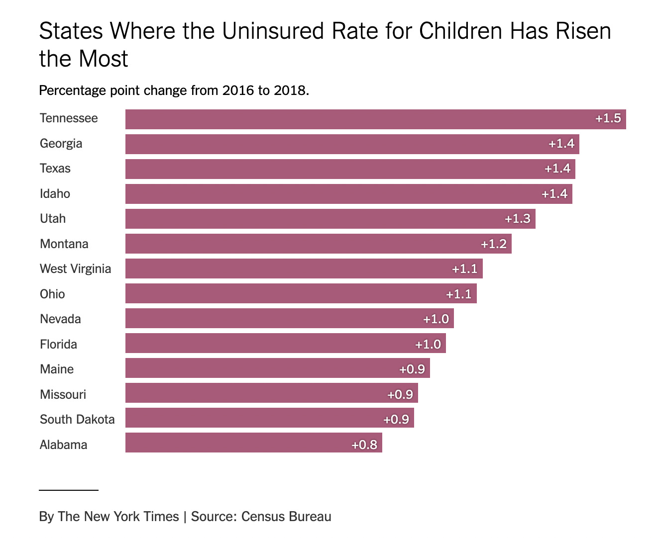 Some of these stories were already known, and their consequences predictable. For example, Tennessee saw 250,000 children lose coverage after it required families to re-enroll via a 49 page form sent in the mail. Many families never received the information, and the state kicked people off the program even when it had administrative data demonstrating eligibility.