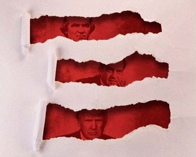 Andrew Johnson followed Abraham Lincoln, the Great Emancipator; Nixon followed Lyndon Johnson’s Civil Rights Revolution; Donald Trump’s first election came after the first African American to serve as president. All of these transformative presidents, as I identify them, had their flaws and imperfections. But all changed American politics in profound ways – and created the politics that allowed lawless, populist successors to attain power.