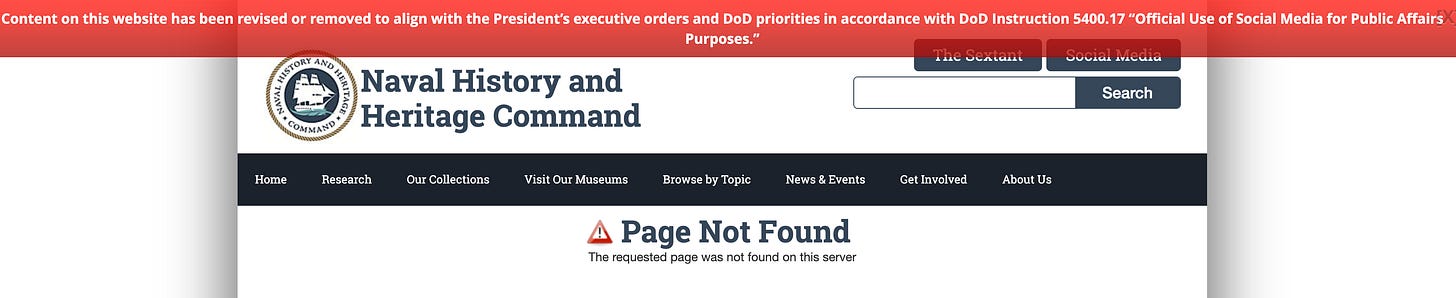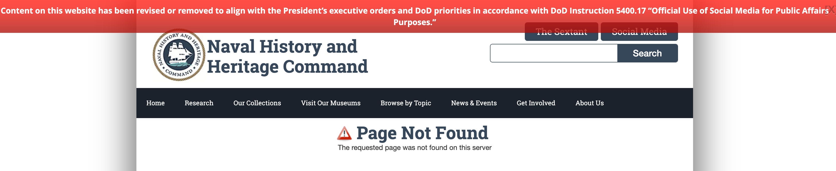 [Update: About a month after this piece was published, the DOD restored some of the pages mentioned, such as those about Jackie Robinson and the Navajo Code Talkers. Pushback works!]