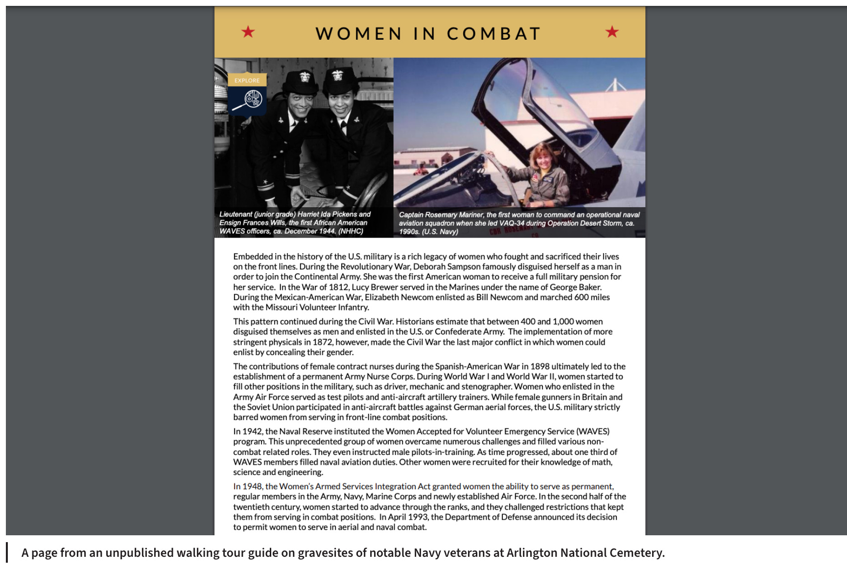 Among the people listed on the website’s “Women’s History” landing page are Elizebeth Smith Friedman, a leading cryptologist of the 20th century and one of the first women employed as a codebreaker for the United States; Capt. Joy Bright Hancock, who has been credited with expanding women’s opportunities in the military; and Maj. Gen. Marcelite Jordan Harris, once the highest-ranking female officer in the Air Force and the highest-ranking Black American woman in the Defense Department.