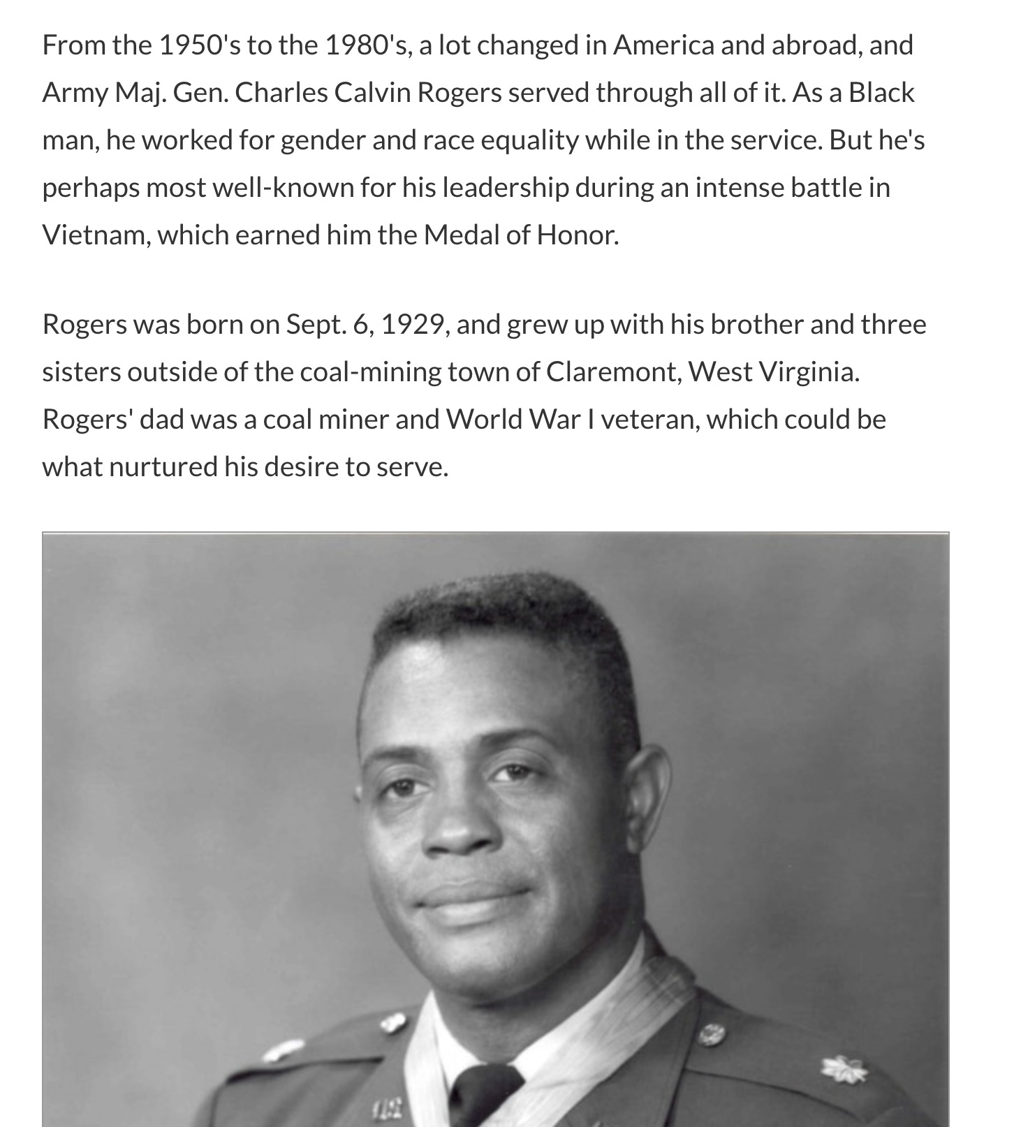 You can find Major General Rogers story archived here in the internet archive. Up until recently, his life and achievements have been celebrated. Now, he has been reclassified as DEI and disappeared.