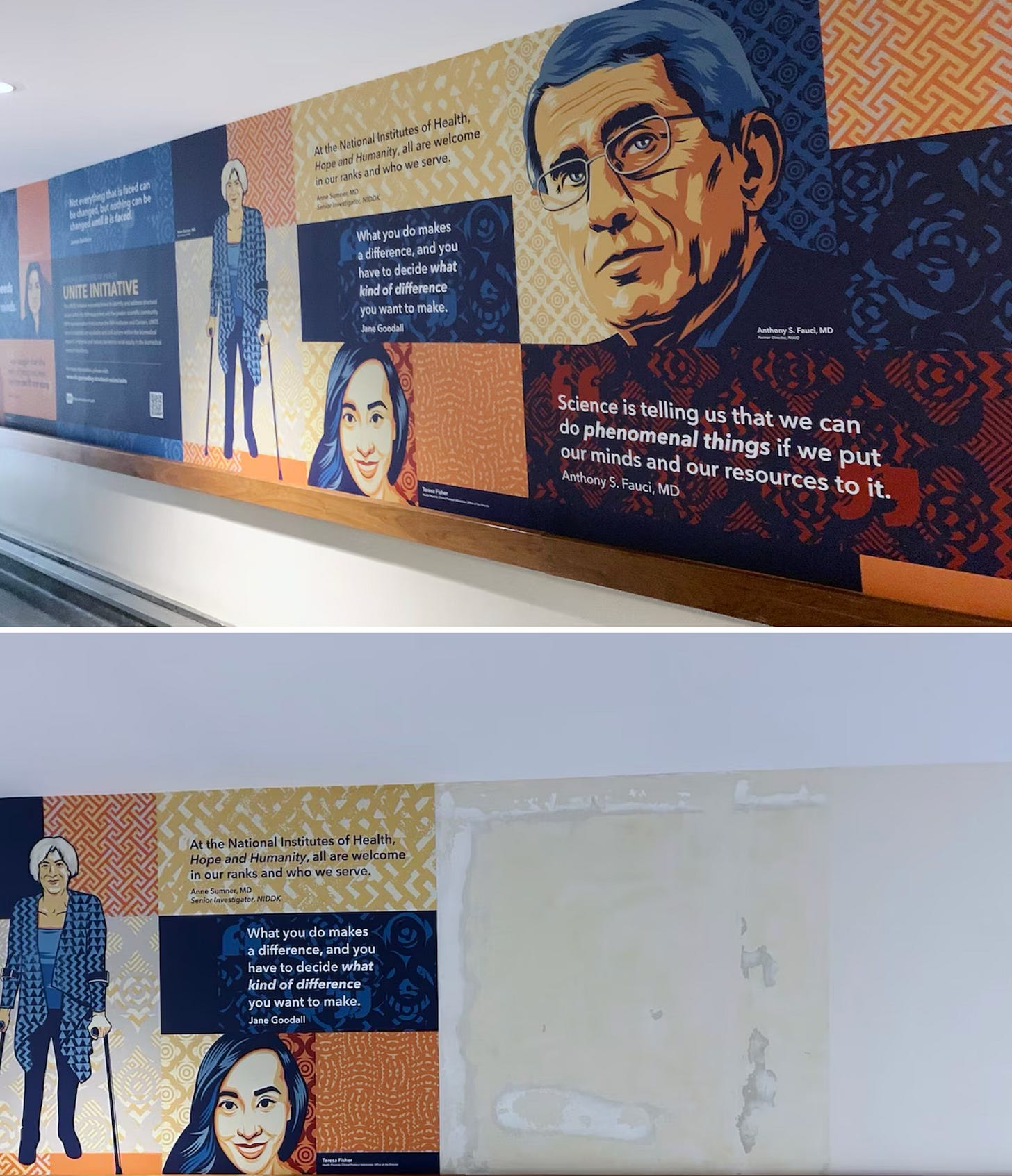 Right now, the federal government is engaged in a dramatic purging of visual representations of American history and its current workforce. Some of this is a Stalinist removal of former officials. The official portraits of Chairman of the Joint Chiefs of Staff Mark Milley, and Trump Secretary of Defense Mark Esper are gone. An NIH mural featuring Anthony Fauci was removed.