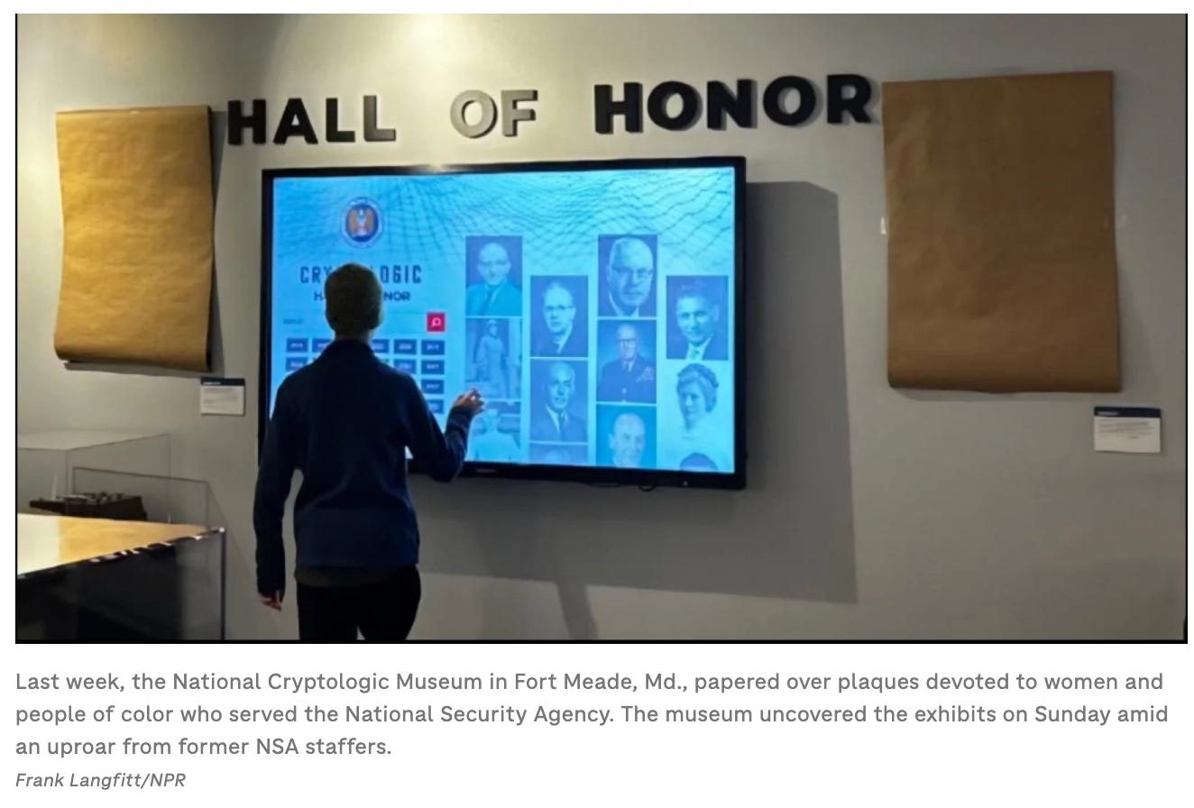 Museums that feature representations honoring women, persons of color or LGBTQ government employees have also seen those items removed. An exhibit about trans service members was removed from the Army Women’s Museum. The National Cryptologic Museum covered offending images—but reversed course after public pushback.