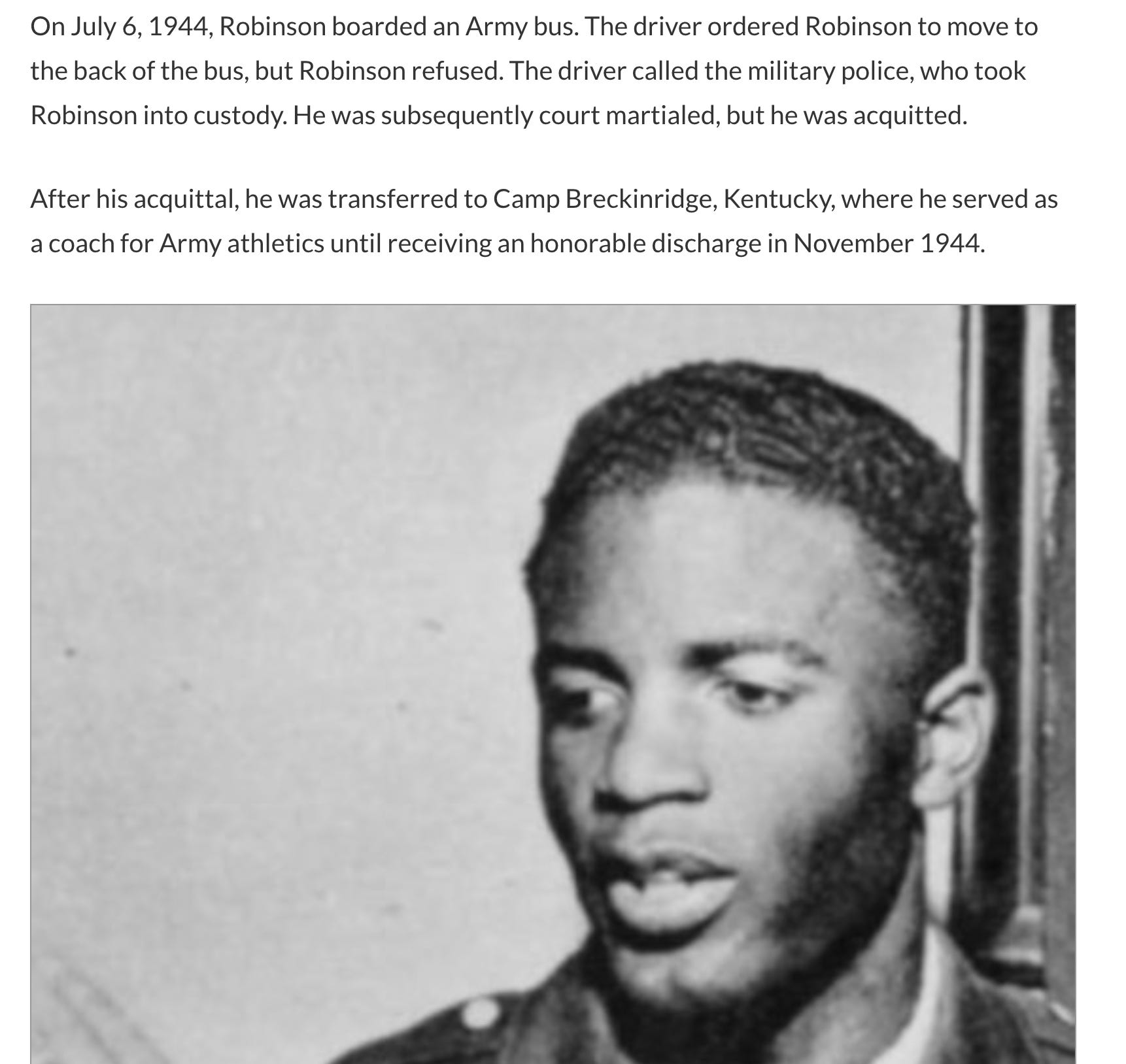 A story about how baseball great Jackie Robinson faced discrimination in the military before he broke the color barrier in baseball has been removed.