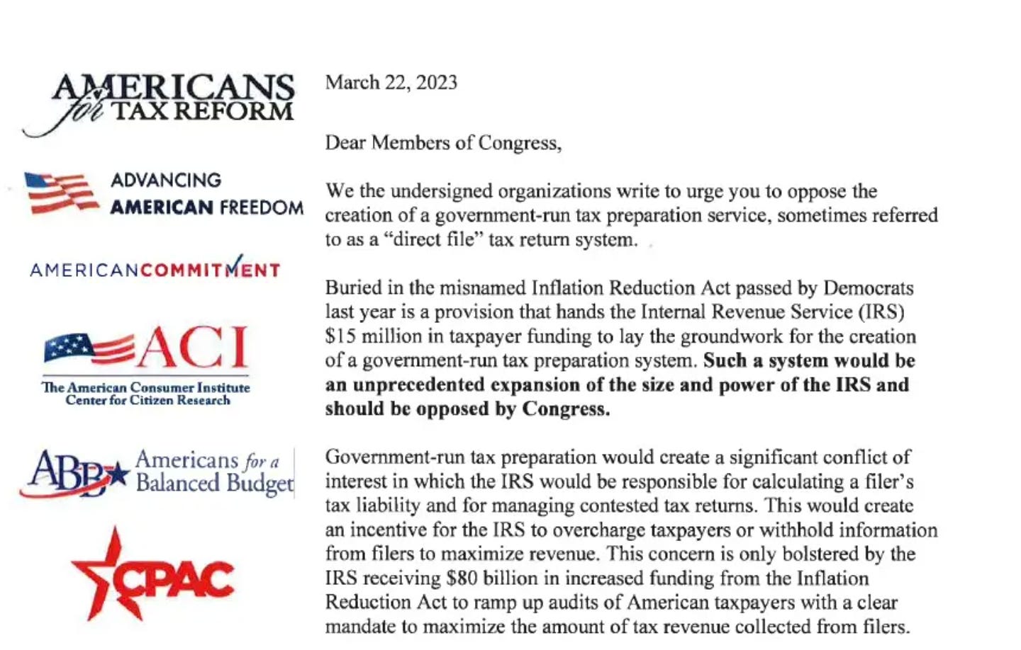 The anti-tax groups roll out out the same tired arguments they have since versions of direct file were first proposed, chiefly that there is a conflict of interest between the IRS collecting taxes and estimating tax liability. Not coincidentally, Intuit makes exactly the same claim. “Unquestionably, a government-run tax preparation system that makes the tax collector the investigator, auditor, enforcer, and now also the preparer, is a conflict of interest” says Intuit CEO, Susan Goodarzi.